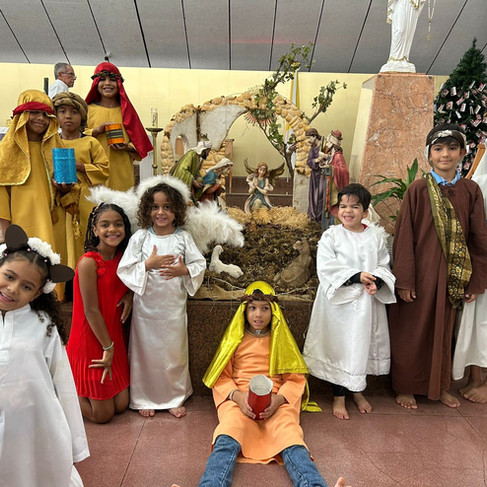 Durante a celebração da Missa da Misericórdia, as crianças nos presentearam com um momento especial e emocionante: a encenação do nascimento de Jesus, que aconteceu ao final da Santa Missa, enchendo nossos corações de esperança e fé.